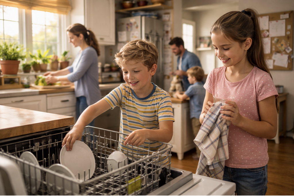 When a child sees that dishes do not magically clean themselves, that clothes do not return to drawers by accident, that someone must remember to feed the pet, something shifts. They begin to understand that homes run on effort.